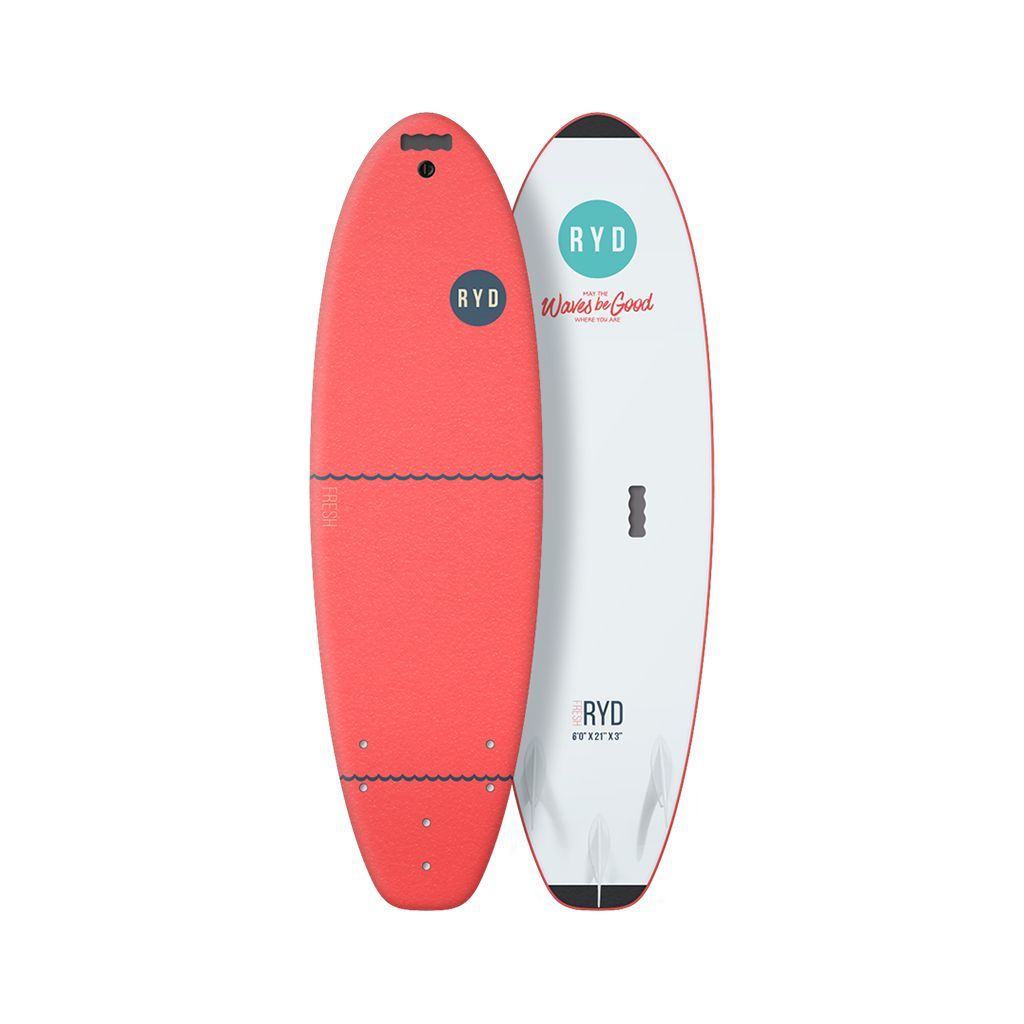 Figuring out which RYD soft board you need is an easy process! If you're a surf school or a beginner, you'll be looking at our Fresh Range. These durable boards are made with a triple stringer EPS core and feature EVA bumpers on the nose and tail for extra strength, bevelled handles on the nose for easy tow backs by instructors, and lines on the deck to show you where to stand! We've also added a GoPro mount for you to capture the memory of riding your first wave!